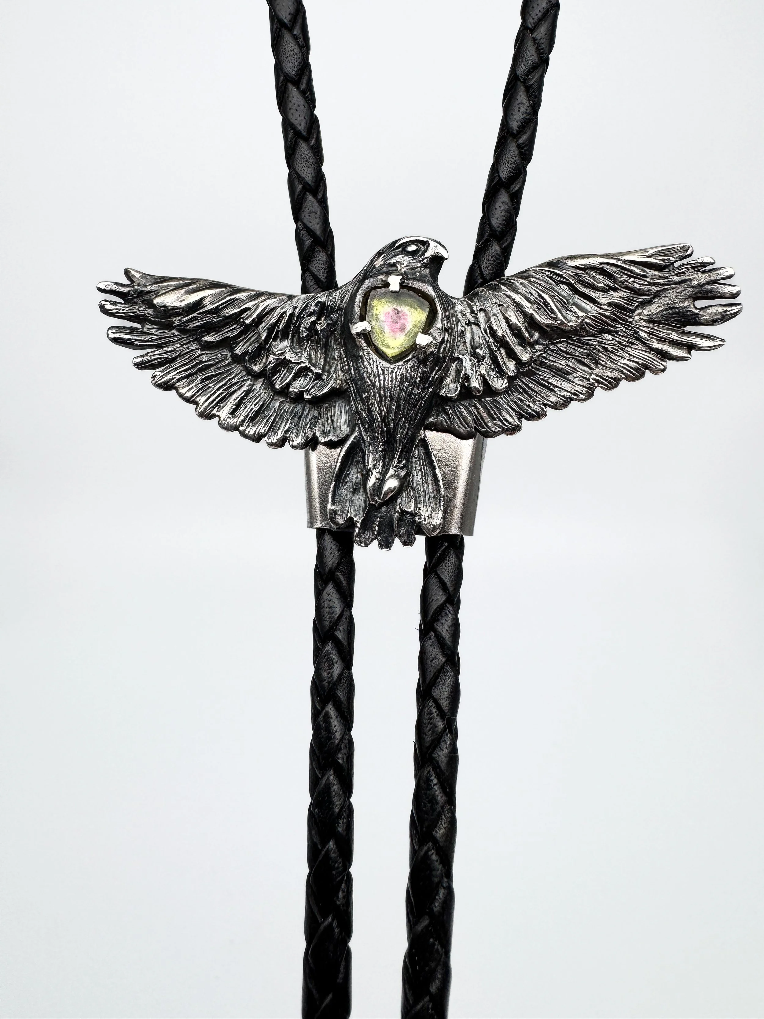 Tourmaline, Sterling Silver, Stainless Steel, Leather