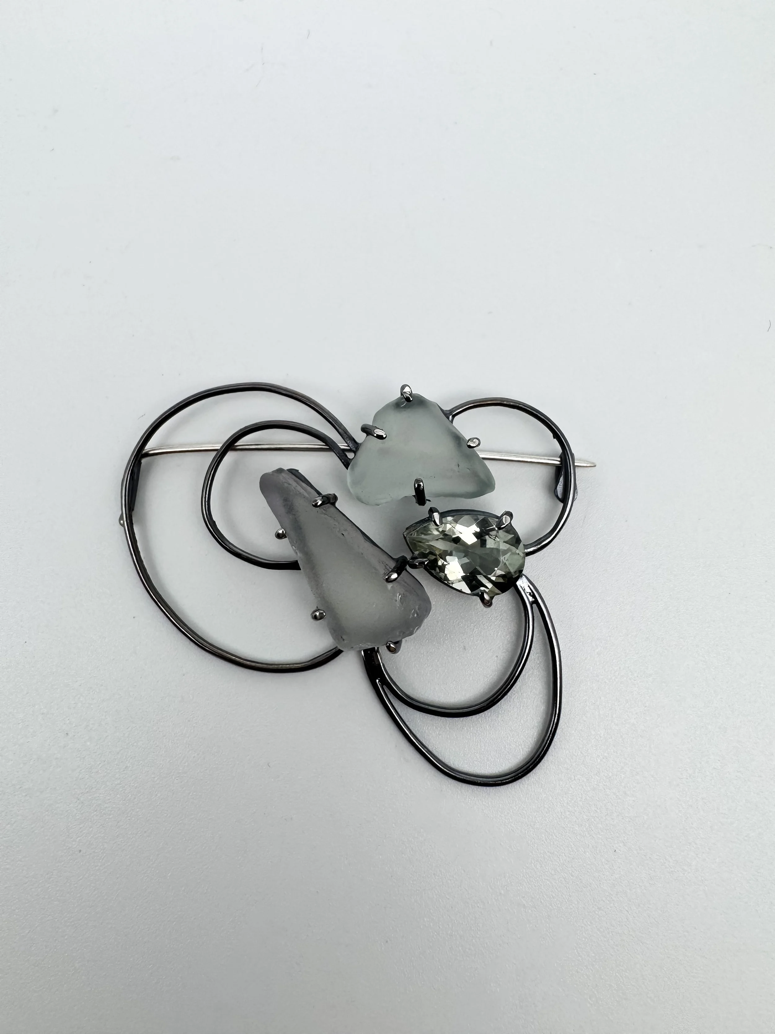"Disconnect" Sea Glass, Quartz, Sterling Silver